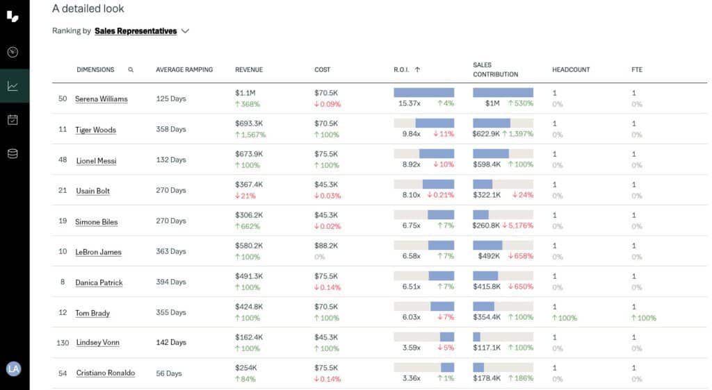 The new ranking table feature in the efficiency and performance dashboards now includes key metrics like Average deal size by territory and Sales Representative, Return on Investment (ROI) and Sales Contribution. These additions provide sales and finance teams with deeper insights into individual and team and territory performance, helping them identify top performers and areas for improvement.