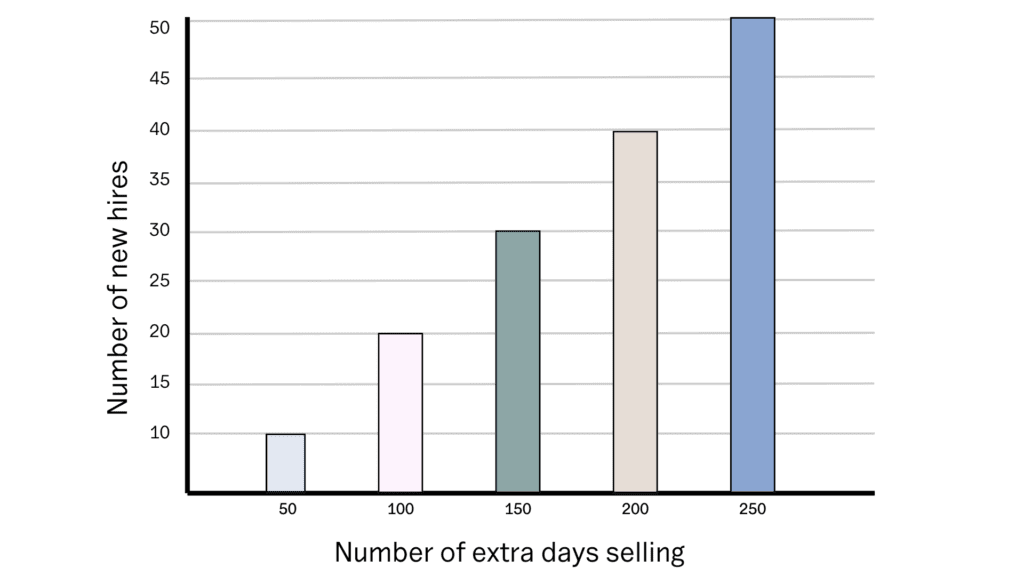 If we apply that to a larger sales organization, who might hire 50 new people over the course of a year, that’s 250 extra days of selling.