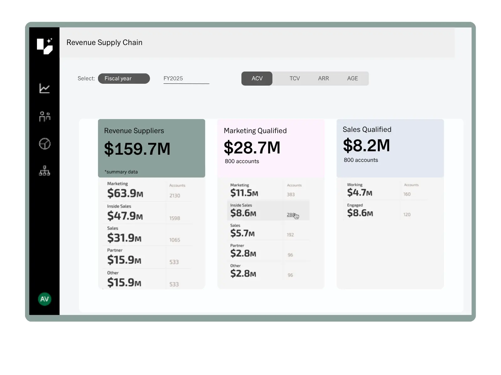 Break down silos with an end-to-end view of every dimension of your demand engine – stages, sources and intent signals – to optimise revenue flow.