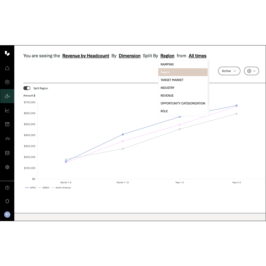 Automatically track average ramping times across teams and sales productivity by tenure to identify trends and improve onboarding, training, and enablement strategies.